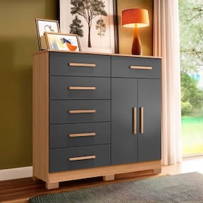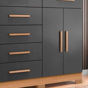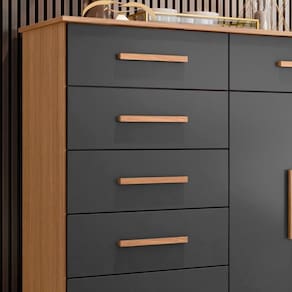 Puxadores de MDF Revestidos: Detalhes de acabamento que combinam funcionalidade e estilo, os puxadores de MDF revestidos oferecem uma pegada confortável e complementam o design elegante da cômoda.
