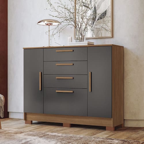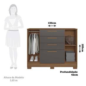Caracteristicas Estrutura: MDP 12mm e 15mm Acabamento: Pintura UV Quantidade e Tipo de Portas: 2 de bater Tipo de Dobradicas/Trilhos: Dobradicas Metalicas Simples Quantidade de Gavetas: 4 Tipo de Corredicas: Telescopicas Tipo de Puxadores: MDF revestido Quantidade e Tipo de Cabideiros: 1 em Aluminio Quantidade de Prateleiras: 1 Suporte ate: 8kg na prateleira e 3kg por gaveta. Manutencao: Nao limpar com alcool ou qualquer outro produto quimico, utilize somente pano seco ou levemente umedecido. Sistema de Montagem: Cavilhas, Parafusos e Minifix Itens Inclusos: 1 Comoda, Kit ferragens e Manual de montagem Garantia de Fabrica: 3 meses