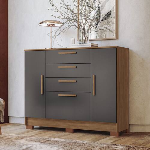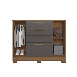 Caracteristicas Estrutura: MDP 12mm e 15mm Acabamento: Pintura UV Quantidade e Tipo de Portas: 2 de bater Tipo de Dobradicas/Trilhos: Dobradicas Metalicas Simples Quantidade de Gavetas: 4 Tipo de Corredicas: Telescopicas Tipo de Puxadores: MDF revestido Quantidade e Tipo de Cabideiros: 1 em Aluminio Quantidade de Prateleiras: 1 Suporte ate: 8kg na prateleira e 3kg por gaveta. Manutencao: Nao limpar com alcool ou qualquer outro produto quimico, utilize somente pano seco ou levemente umedecido. Sistema de Montagem: Cavilhas, Parafusos e Minifix Itens Inclusos: 1 Comoda, Kit ferragens e Manual de montagem Garantia de Fabrica: 3 meses