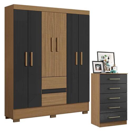 Cômoda 2014140 e Guarda Roupa Casal Coimbra 2005138 Atacama Grafite - Aramóveis