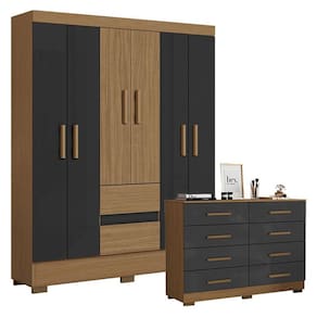 Cômoda 2014148 e Guarda Roupa Casal Coimbra 2005138 Atacama Grafite - Aramóveis