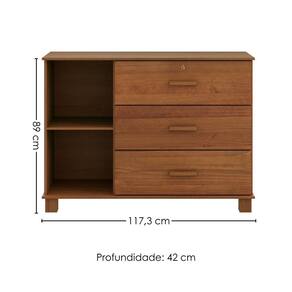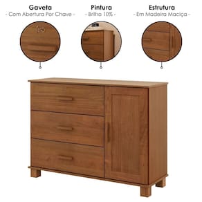 Cômoda 1139C, versátil e robusta, com sofisticação rústica que revitaliza sua rotina. Com estrutura 100% em Madeira Maciça Taeda de 13/14 mm (presença calorosa, toque orgânico) e acabamento em pintura brilho 10%. Inclui gavetas com corrediças telescópicas (dessas, a superior conta com fechadura por chave), porta lateral com detalhes usinados como moldura, dobradiças metálicas, puxadores em madeira maciça e tampo reforçado. Além de pés retos também em Madeira Maciça (65 mm). Produto será entregue em 01 volume.