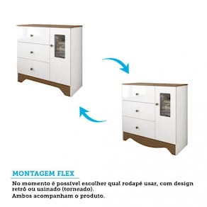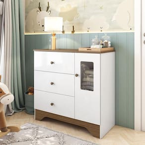 A Cômoda Infantil Ben é uma solução moderna para montar o quarto de bebê com estratégias inteligentes, qualidade e o melhor custo-benefício. É um produto em MDF e acabamento em pintura atóxica. Possui 1 porta com janela com vidro que permite visualizar o interior do móvel 1 prateleira e 3 gavetas com corrediças telescópicas. O produto possui um diferencia na montagem com diuas opções de rodapé para escolha no momento da montagem.