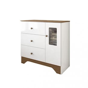 Características: Estrutura em MDF 3 Gavetas 1 Porta com janela 1 Prateleira Corrediças Telescópicas Puxador de plástico