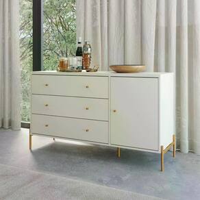 A Cômoda Multifuncional Jasper é a escolha perfeita para quem busca funcionalidade e elegância no quarto. Com 3 gavetas espaçosas em corrediças telescópicas que promovem o deslizamento suave e silencioso e 1 porta com prateleira interna, ela oferece praticidade no dia a dia, ideal para organizar roupas, acessórios e outros itens. As gavetas contam com puxadores em Zamac, proporcionando um design sofisticado e fácil de manusear. Sua porta permite o uso como sapateira, enquanto o tampo livre é perfeito para exibir uma peça decorativa, um espelho ou até mesmo alguns livros. Fabricada em MDP com acabamento em Verniz UV Touch, a cômoda destaca-se pela base em tubo de aço, criando um design moderno e cheio de personalidade.