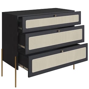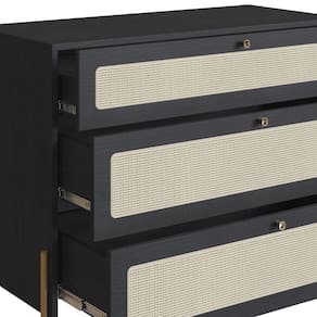 A Cômoda 3 Gavetas Oslo é confeccionada em MDP com acabamento BP, pés metálicos e aplique de tela sintética nas gavetas. Móvel multifuncional, conta com três gavetas para guardar acessórios e roupas tornando o espaço mais organizado. Traz como característica um traço artesanal, suave e acolhedor. Com design escandinavo minimalista, remete em suas linhas retas a simplicidade, charme e funcionalidade que sua casa merece. Composta com uma paleta de cores neutras, Nero é um acabamento ebanizado atemporal, para quem deseja fugir do tradicional sem perder a nobreza, sofisticação e elegância da madeira, tornando-se assim a opção ideal para um ambiente com toque sofisticado e ao mesmo tempo aconchegante.