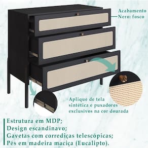 Quantidade em estoque: 300 | Material para Filtro: MDP | Marca: Artesano | Peso do Produto (Kg): 26 | Descrição do Tamanho: 82 x 93 x 42,5 cm | Comprimento do Produto (cm): 42 | Largura do Produto (cm): 93 | Nome do Simples no Fornecedor: Comoda 3 Gv Corrediças Telescopicas Palhinha 27934 Linha Oslo Artesano | Profundidade com embalagem (cm): 98 | Largura com embalagem (cm): 46 | Modelo: 27934 | Nome: Comoda 3 Gv Corrediças Telescopicas Palhinha 27934 Linha Oslo Artesano | Altura do Produto (cm): 82 | Instruções/Cuidados: Limpar com pano levemente umedecido com água, não utilizar produtos abrasivos. | Altura com embalagem (cm): 18 | Peso com embalagem (cm): 26 | Estado de Origem: RS | Produto precisa de Montagem?: Sim, a montagem é simples mas sugerimos a contratação do nosso serviço de montagem (para os CEPs em que o serviço esta disponivel). | Conteúdo da Embalagem: 01 Cômoda | Cor: Madeira | Garantia: 90 dias para eventuais defeitos de fabricação. | Produto: Cômoda | Tonalidade: Marrom | Quantidade de Gavetas: 3 Cor: Nero