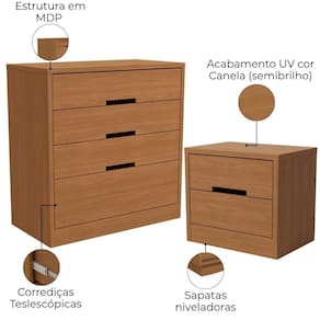 Conjunto composto por 1 cômoda S824 e 2 mesas de cabeceira S822, solução funcional para quartos com design moderno! Estrutura em MDP (15mm) com acabamento em pintura UV. Conta com 8 gavetas usinadas (sendo 3 gavetas e 1 gavetão na cômoda e 2 gavetas em cada mesa de cabeceira), corrediças telescópicas e sapatas niveladoras para maior facilidade no dia a dia. Ideais para compor quartos com organização e estilo. Estes produtos serão entregues em 03 volumes.
