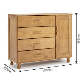 Dimensões da Cômoda 4 Gavetas em Madeira Maciça 120 cm: