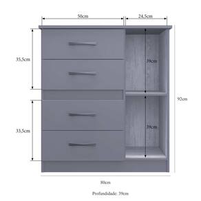 Dimensões do produto montado: Altura: 92cm | Largura: 80cm | Profundidade: 39cm *Você pode consultar as medidas internas na imagem técnica do produto.