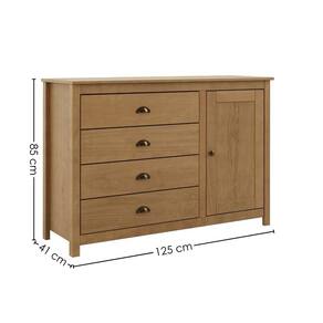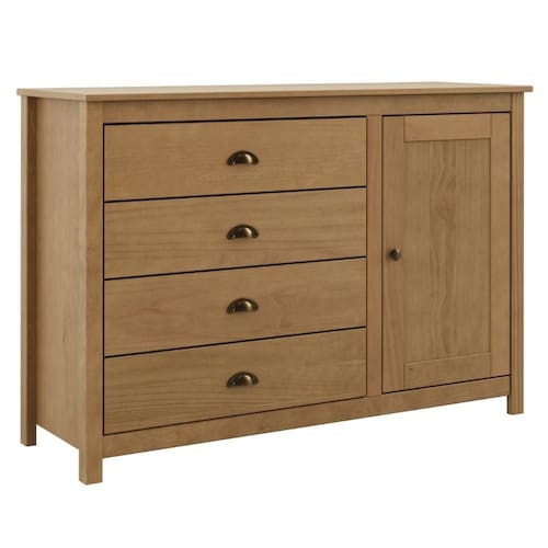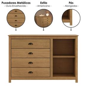 Cômoda Topázio, elegante e atemporal, uma peça única para seu lar! Sua estrutura é composta 100% em Madeira Maciça Taeda 16 mm (com presença calorosa e toque orgânico) e com acabamento em pintura brilho 5%. Composta por gavetas com corrediças telescópicas e puxadores metálicos estilo concha na cor ouro envelhecido. Além de porta lateral com dobradiças metálicas, interna com prateleira e amplo espaço de armazenamento e pés alongados que acompanham a estrutura do produto (madeira maciça 16 mm). Produto será entregue em 01 volume.