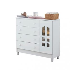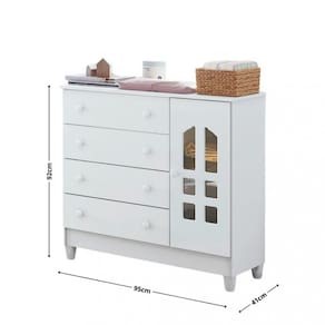 Características: Estrutura em MDF e MDP 1 Porta 4 Gavetas Pintura atóxica Corrediça telescópica Dobradiças em aço Pés de PVC