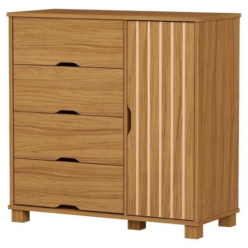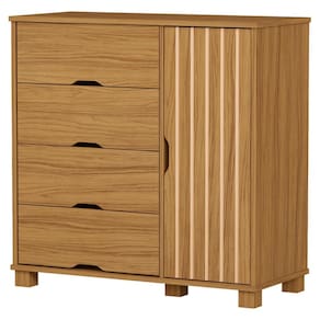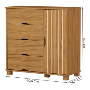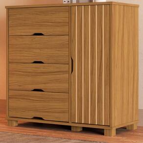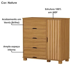 Cômoda Bela, moderna e funcional, perfeita para valorizar e complementar qualquer ambiente! Estrutura 100% MDF de (03/12/15 mm) e acabamento verniz (brilho). Composta por design moderno com cantos retos, tampo amplo e espaçoso, gavetas com corrediças telescópicas (suportando até 5 kg cada), porta com detalhes em frisos de baixo relevo e dobradiças metálicas. Além de puxadores usinados estilo cava. Este produto será entregue em 1 volume.