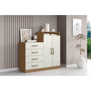 A Cômoda 4 Gavetas 1 Porta Londres Aramóveis, produzido em MDP 15mm e 12mm de espessura. Seu amplo espaço interno proporciona estabilidade ao móvel, enquanto os puxadores de plástico conferem resistência. Equipada com dobradiças metálicas, a cômoda oferece maior durabilidade e facilidade ao abrir e fechar as portas. O acabamento em verniz de alto brilho não apenas conserva o móvel, mas também proporciona uma estética contínua, garantindo beleza. Escolha qualidade e estilo com a Cômoda Londres Aramóveis.