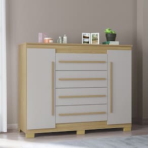 Cômoda 4 Gavetas 2 Portas com Pés Valência Poquema - Off White
