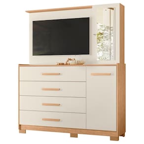 Características: 1 Porta superior com chave 1 Porta com espelho 4 Gavetas Painel para TV de até 43 polegadas Corrediças telescópicas Estrutura MDP