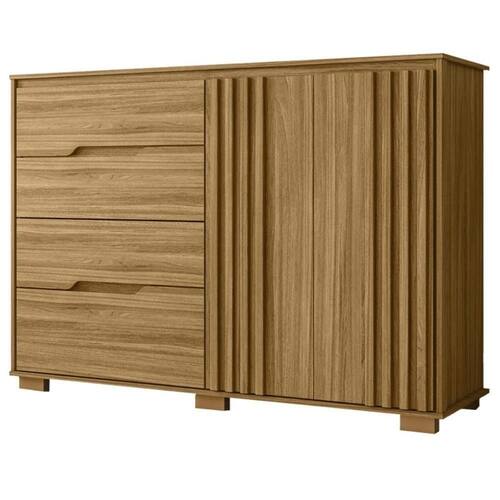 A cômoda Texas é um móvel versátil e elegante, oferecendo características que combinam organização e design ao seu ambiente, com 4 gavetas e 2 portas ripadas.