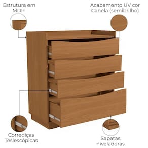 Mesa Cômoda M260, solução funcional com design inteligente. Estrutura em MDP (15mm) com acabamento em pintura UV. Acompanha sapatas niveladoras e 4 gavetas usinadas (sendo 1 gavetão) equipadas com corrediças telescópicas, para maior facilidade no dia a dia. Este produto será entregue em 01 volume.