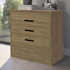 Cômoda S824, solução funcional com design inteligente. Estrutura em MDP (15mm) com acabamento em pintura UV. Acompanha sapatas niveladoras e 4 gavetas usinadas (sendo 1 gavetão) equipadas com corrediças telescópicas, para maior facilidade no dia a dia. Este produto será entregue em 01 volume.