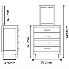 Acompanha o produto: - 1x Cômoda 4 Gavetas com Espelho 100% Madeira Maciça DanaManual de MontagemAcessórios de Montagem