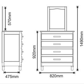 Características da Cômoda 100% Madeira 82 cm 4 Gavetas 1 Espelho: