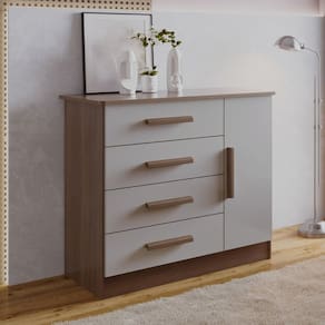 Ela é equipada com sapateira, que pode ser utilizado tanto para comportar seus calçados, como demais acessórios.Atenção:A coloração das imagens do produto pode ter diferentes tonalidades dependendo do seu monitor.Ao receber o produto verifique as seguintes informações:Confira a quantidade de caixas e volumes;Consulte se o nome do comprador consta em todas as etiquetas;Verifique se as caixas não apresentam sinais de danos ou violação;Sempre confira seu produto no ato da entrega.NÃO nos responsabilizamos pela montagem do produto.Caso resida em apartamento, verificar se todos os volumes possuem tamanhos adequados ao elevador,Caso contrário é necessário solicitar ajuda para entrega de seu produto até seu apartamento. Produto Montado: Sim Acabamento da Gaveta: Pintura UV Acabamento da Porta: Pintura UV Acabamento da Prateleira: Pintura Texturizada UV Ambiente Principal: Quarto codigo_ean: 7900288192585 Complexidade da Montagem: Média: pode ser montado por mais de uma pessoa e/ou necessite de maior conhecimento para montagem Cor: Castanho/ Off White Cor do Produto: Castanho/ Off White Cor do Puxador: Marrom Cor Interna: Castanho Escala de Brilho: Alto Brilho e Fosco Escala de Brilho da Gaveta: Fosco Escala de Brilho da Porta: Semi-Brilho Escala de Brilho da Prateleira: Fosco Gaveta com Chave: Não Informações Complementares: Tampo e frente de porta e gavetas 100% mdf, gavetas e fundos são em mdp, a cor off white tem fundo puxado pra acizentando, possui brilho, é bem mais bonita ao forte Itens Inclusos: 1 Cômoda, Kit Ferragens e Manual de Montagem Linha ou Coleção: Florença Manual de Montagem e Instalação: https://product-hub-prd.madeiramadeira.com.br/747541047/documents/bff17c62-a0f8-4fcf-ab02-e88499dc7543ce1a801551900comodafirenze.pdf Marca: D Doro Material da Gaveta: MDF/MDP Material da Porta: MDF Material da Prateleira: MDP Material do Fundo: HDF Material do Puxador da Porta: Madeira Material Principal: MDF/MDP Necessita Montagem: Sim Origem do Produto: Nacional Peso: 43,2 kg Peso Máximo por Gaveta: 5 kg Peso Máximo por Prateleira: 15 kg Possui Espelho: Não Possui Nichos: Não Possui Pés: Não Possui Portas: Sim Possui Prateleiras: Sim Quantidade de Gavetas: 04 Gavetas Quantidade de Prateleiras: 01 Prateleira Recomendações de Uso, Manutenção e Limpeza: Pano levemente umedecido e depois passar umpano seco. Não utilizar produtos de limpeza abrasivos, nem esponjas de aço. Sapatas Niveladoras: Não Sistema de Montagem: Parafusos, Cavilhas Suporta Até (kg): 30 kg Tipo de Cômoda: Adulto Tipo de Corrediça da Gaveta: Metálica Telescópica Tipo de Dobradiça/Corrediça da Porta: Pressão Tipo de Porta: Bater Tipo de Puxador da Gaveta: Externo Tipo de Puxador da Porta: Externo