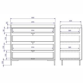 Com 4 gavetas amplas, o móvel oferece espaço ideal para armazenar roupas, acessórios e objetos do dia a dia. A abertura suave é garantida por corrediças metálicas, proporcionando uso confortável e maior durabilidade no cotidiano.