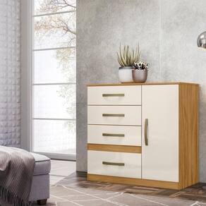 Comoda 4 Gavetas E 1 Porta, é perfeita para você que procura praticidade, organização e beleza para compor o seu quarto. Estrutura em MDP de 12 e 15 mm que proporcionam melhor acabamento nas bordas e superfícies, e pintura com acabamento em UV(Brilho/Fosco). Composta por 1 porta articulada, 4 gavetas, puxadores na cor bronze, espaço para sapateira e acompanham sapatas plásticas. Deixando o ambiente ainda mais elegante e aconchegante. Este móvel chegará na sua casa separado em 01 volume.
