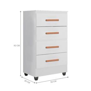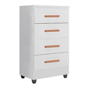 Cômoda com 04 Gavetas com profundidade excelente para acomodar todas as suas roupas. Amplo espaço com corrediças telescópicas, puxadores em PVC. Perfeito para ser como penteadeira e para expor seus itens de decoração.