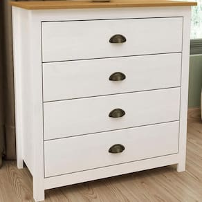 Cômoda projetada para quem busca um móvel sofisticado e atemporal. Com 80cm de largura e produzida em madeira maciça de pinus de reflorestamento, sua estrutura robusta garante durabilidade e resistência. Seu acabamento com pintura acetinada em verniz PU e UV realça a beleza natural da madeira enquanto protege contra desgastes do dia a dia. O design funcional inclui 04 gavetas com corrediças telescópicas, permitindo uma abertura suave e silenciosa, puxadores metálicos no estilo concha que agregam um charme artesanal, e pés alongados em madeira que trazem leveza e sofisticação ao móvel. Este móvel chegará em sua casa separado em 01 volume.