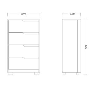 A Cômoda Sole é moderna e funcional. Dispõe de 4 gavetas para manter suas roupas e objetos pessoais mais organizados. Possui reforço estrutural e os puxadores são em formato cava. Seu design garantirá mais beleza ao seu ambiente.