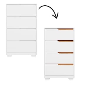 A Cômoda Sole é moderna e funcional. Dispõe de 4 gavetas para manter suas roupas e objetos pessoais mais organizados. Possui reforço estrutural e os puxadores são em formato cava. Seu design garantirá mais beleza ao seu ambiente.