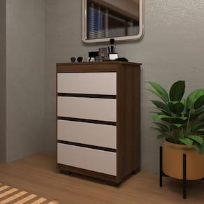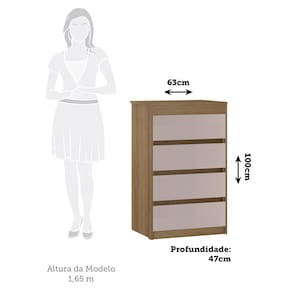 Características Material da Estrutura: MDP 15mm Quantidade de Gavetas: 4 Tipo de Corrediças: Metálicas Telescópicas Tipo de Puxadores: Cava -recorte na peça frontal- Tipo de Pés: 4 em Plástico 5cm Sistema de Montagem: Cavilhas e Parafusos Garantia: 3 meses