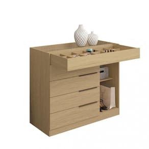 Características: Estrutura em MDP 12mm e 15mm de espessura Tampo de vidro 1 Porta Dobradiças metálicas 1 Prateleira 5 Gavetas Corrediças telescópicas Porta jóias na primeira gaveta Puxadores em ABS Acabamento em verniz alto brilho