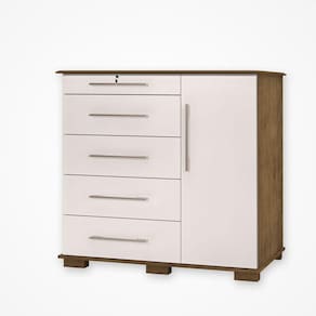 A Cômoda Detroit New é uma verdadeira peça coringa para completar o seu ambiente. Possui 5 Gavetas, sendo 1 com chave, 1 porta lateral com 1 prateleira interna. Seu design com base reta e puxadores oferece um aspecto muito mais moderno. Produzida em MDF/MDP, com pintura UV com acabamento texturizado amadeirado, que proporcionam maior durabilidade e resistência ao produto. Produto Montado: Sim Acabamento da Gaveta: Pintura Texturizada UV Acabamento da Porta: Pintura Texturizada UV Acabamento da Prateleira: Pintura Texturizada UV Acompanha a Almofada: Não Altura dos Pés: 6 cm Altura Máxima dos Pés: 6.0000 Ambiente Principal: Quarto codigo_ean: 7908167270522 Complexidade da Montagem: Média: pode ser montado por mais de uma pessoa e/ou necessite de maior conhecimento para montagem Cor: Jequitibá/Off White Cor do Produto: Jequitibá/Off White Escala de Brilho: Fosco Escala de Brilho da Gaveta: Fosco Escala de Brilho da Porta: Fosco Escala de Brilho da Prateleira: Fosco Gaveta com Chave: Sim Itens Inclusos: 1 Cômoda e 1 Manual de Montagem Manual de Montagem e Instalação: https://product-hub-prd.madeiramadeira.com.br/580753/documents/f7ce61ed-9ecb-4baa-81bb-19d470d3d1bb5dfb6526949cmodadetroitnew.pdf Material da Gaveta: MDF/MDP Material da Porta: MDF/MDP Material da Prateleira: MDF/MDP Material do Fundo: MDF/MDP Material dos Pés: MDP Material Principal: MDF/MDP Necessita Montagem: Sim Origem do Produto: Nacional Peso: 57,86 kg Peso Máximo por Gaveta: 45 kg Peso Máximo por Prateleira: 55 kg Possui Espelho: Não Possui Nichos: Não Possui Pés: 06 Possui Portas: Sim Possui Prateleiras: Sim Possui Rodízio: Não Possui Trocador: Não Quantidade de Gavetas: 05 Gavetas Quantidade de Prateleiras: 01 Prateleira Recomendações de Uso, Manutenção e Limpeza: Limpar com Pano Seco Sapatas Niveladoras: Não Sistema de Montagem: Parafusos, Pregos, Tampos e Cavilhas Suporta Até (kg): 80 kg Tipo de Corrediça da Gaveta: Metálica Simples Tipo de Dobradiça/Corrediça da Porta: Metálica Tipo de Porta: Bater Tipo de Puxador da Gaveta: Externo Tipo de Puxador da Porta: Externo Ean: 7908167270522