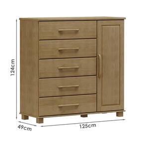 Modelo: Comoda 5 Gavetas 1 Porta Madeira Maciça 125 cm 2251