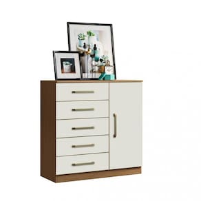 A Cômoda 5 Gavetas 1 Porta Milão Aramóveis, fabricada em MDP 15mm e 12mm de espessura. Seu espaçoso interior proporciona estabilidade ao móvel, enquanto os puxadores de plástico conferem resistência. Equipada com dobradiças metálicas, a cômoda oferece maior facilidade ao abrir e fechar as portas. O acabamento em verniz de alto brilho não apenas conserva o móvel, mas também proporciona uma estética contínua, garantindo beleza, resistência e prolongando a vida útil do produto.