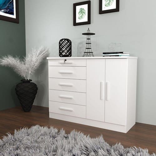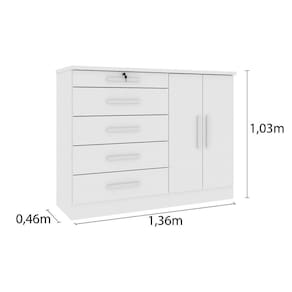 A Cômoda 5 Gavetas Istambul Tcil Móveis é a peça ideal para quem busca elegância e funcionalidade em um único produto. Com cinco gavetas, uma com chave, com corrediças telescópica e duas porta com dobradiças metálicas. O móvel possui um excelente espaço interno para guardar roupas, sapatos e outros objetos. A Cômoda 5 Gavetas Istambul Tcil Móveis é feita em MDP e 7 puxadores em MDF proporcionando beleza e conforto ao cliente. Acabamento da Gaveta: Pintura UV Acabamento da Porta: Pintura UV Acabamento da Prateleira: Pintura UV Ambiente Principal: Quarto Complexidade da Montagem: Média: pode ser montado por mais de uma pessoa e/ou necessite de maior conhecimento para montagem Cor: Neve Cor do Produto: Neve Escala de Brilho: Fosco Escala de Brilho da Gaveta: Fosco Escala de Brilho da Porta: Fosco Escala de Brilho da Prateleira: Fosco Gaveta com Chave: Sim Informações Complementares: Divisória de gaveta biju para jóias Itens Inclusos: 1 Cômoda, Kit Ferragens e Manual de Montagem Linha ou Coleção: Istambul Manual de Montagem e Instalação: https://cdn2.madeiramadeira.com.br/atributo/tcil-moveis/946394-manual-de-montagem-cOmoda-istambul.pdf Material da Gaveta: MDP Material da Porta: MDP Material da Prateleira: MDP Material do Fundo: MDP Material do Puxador da Gaveta: MDF Material do Puxador da Porta: MDF Material Principal: MDF Necessita Montagem: Sim Origem do Produto: Nacional Peso: 60,2 kg Peso Máximo por Gaveta: 5 kg Peso Máximo por Prateleira: 5 kg Possui Espelho: Não Possui Nichos: Não Possui Pés: Não Possui Portas: 02 Possui Prateleiras: 02 Recomendações de Uso, Manutenção e Limpeza: Limpar somente com pano macio e seco, não colocar diretamente em incidência da luz solar. Sapatas Niveladoras: Não Sistema de Montagem: Parafusos, Cavilhas e Pregos Suporta Até (kg): 30 kg Tipo de Corrediça da Gaveta: Metálica Telescópica Tipo de Dobradiça/Corrediça da Porta: Metálica Tipo de Porta: Bater Tipo de Puxador da Gaveta: Externo Tipo de Puxador da Porta: Externo
