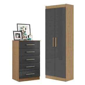 Cômoda 5 Gavetas 2014140 e Armário Multiuso 2000191 Atacama Grafite - Aramóveis