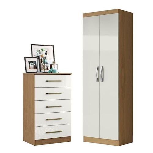 Para você que busca uma cômoda e um armário multiuso para completar o quarto conheça este lindo conjunto, desenvolvido pela aramóveis com materiais de alta qualidade, conta com uma cômoda com 5 gavetas e um armário multiuso com 2 portas para lhe proporcionar espaço suficiente para manter a organização com praticidade no seu dia a dia. Confira e aproveite