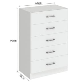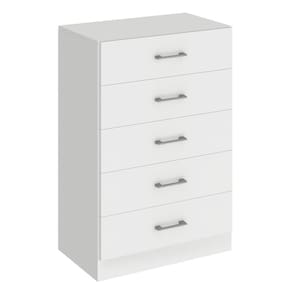 Produzida em MDP 12mm com acabamento em pintura UV, a cômoda possui interno em madeira natural, garantindo um visual mais sofisticado. Conta com 5 gavetas espaçosas com corrediças plásticas, ideais para organizar roupas, acessórios e objetos pessoais.