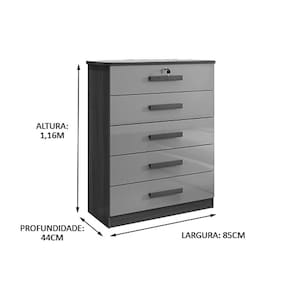 Cômoda 5 Gavetas Classic Organize A Cômoda com 5 Gavetas - Modelo Copacabana é perfeito para a organização de suas roupas. Além disso, suas Gaveta com amplo espaço é ideal para armazenar varias peças de roupas, e as corrediças telescópica que permite uma abertura de forma mais silenciosa. Então, compre agora sua Cômoda. MEDIDAS: Altura: 1,16m Altura com pé: 1.26mLargura: 0,85mProfundidade: 0,44m CARACTERÍSTICAS: