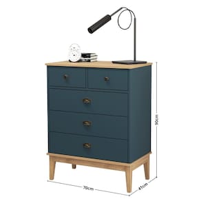 Características: Estrutura em MDP 15mm / MDF 3mm Acabamento em Pintura UV 5 Gavetas Corrediças metálicas Puxador Ponto Material do puxador: Zamarc Pés em madeira maciça