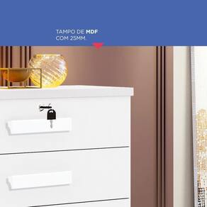 Essa linda cômoda , com acabamento em MDF e pintura UV, era o que faltava para completar seu dormitório. Composta por 05 ( cinco ) gavetas super amplas e 01 ( uma) com chave , você poderá organizar todos seus pertences, e ainda ter a segurança de uma gaveta mestre com fechadura. Ela é o complemento perfeito para o seu quarto, com uma variedade de cores que atende a qualquer decoração. Não perca tempo e garanta já a sua. Produto Montado: Sim Acabamento da Gaveta: Pintura UV Ambiente Principal: Quarto codigo_ean: 7909903441671 Complexidade da Montagem: Baixa: pode ser montado por uma pessoa sozinha Cor: Branco Cor do Produto: Branco Escala de Brilho: Brilhante Gaveta com Chave: Sim Itens Inclusos: 1 Cômoda, Kit Ferragens e Manual de Montagem Manual de Montagem e Instalação: https://product-hub-prd.madeiramadeira.com.br/872840/documents/808dd8dd-537c-427c-9ef4-dae3628158351557362comodaipanema.pdf Material da Gaveta: MDP Material do Fundo: MDF Material Principal: MDP Necessita Montagem: Sim Origem do Produto: Nacional Peso: 45 kg Peso Máximo por Gaveta: 5 kg Possui Espelho: Não Possui Nichos: Não Possui Pés: Não Possui Portas: Não Possui Prateleiras: Não Quantidade de Gavetas: 05 Gavetas Recomendações de Uso, Manutenção e Limpeza: Pano levemente umedecido e depois passar um pano seco. Não utilizar produtos de limpeza abrasivos, nem esponjas de aço. Sapatas Niveladoras: Não Sistema de Montagem: Parafusos, Cavilhas Suporta Até (kg): 30 kg Tipo de Corrediça da Gaveta: Metálica Telescópica Tipo de Puxador da Gaveta: Externo Ean: 7909903441671