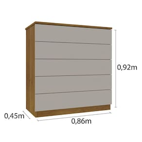 Com a cômoda Premium seu quarto estará completo e seus pertences bem organizados. Produzida inteiramente em MDF, possui 5 gavetas com corrediças metálicas, tampo de 25mm e espaço sapateira. Acabamento resistente com impressão UV e verniz de alta duração. Acabamento da Gaveta: Pintura Ambiente Principal: Quarto Complexidade da Montagem: Baixa: pode ser montado por uma pessoa sozinha Cor: Cinamomo/Off White Cor do Produto: Cinamomo/Off White Escala de Brilho: Semi-Brilho Escala de Brilho da Gaveta: Fosco Gaveta com Chave: Não Itens Inclusos: 1 Cômoda, Manual de Montagem e Kit Ferragens Linha ou Coleção: Premium Manual de Montagem e Instalação: https://cdn2.madeiramadeira.com.br/atributo/tcil-moveis/467577-esquema-de-montagem-comoda-premium.pdf Material da Gaveta: MDF Material do Fundo: MDF Material Principal: MDF Necessita Montagem: Sim Origem do Produto: Nacional Peso: 33,34 kg Peso Máximo por Gaveta: 10 kg Possui Espelho: Não Possui Nichos: Não Possui Pés: Não Possui Portas: Não Possui Prateleiras: Não Recomendações de Uso, Manutenção e Limpeza: Não colocar o produto em lugar úmido, não arrastar, limpar somente com pano macio e seco, não expor o produto a incidência de luz solar, não colocar peso superior ao indicado. Sapatas Niveladoras: Não Sistema de Montagem: Parafusos e pregos. Suporta Até (kg): 50 kg Tamanho: Tipo de Corrediça da Gaveta: Metálica Telescópica Tipo de Puxador da Gaveta: Embutido