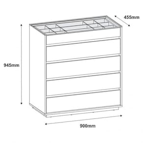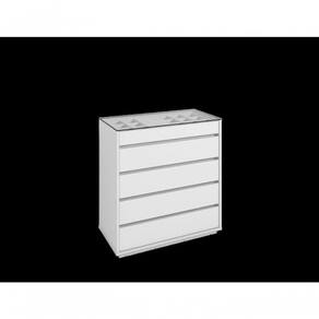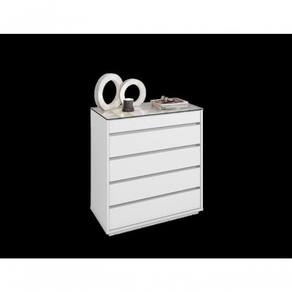 O Cômoda Serena é ideal para o seu quarto! Ele possui 5 gavetas sendo que a superior possui um organizador interno para joias, relógios, etc, feito em MDF. As gavetas possuem corrediças telescópicas. Tampo de vidro, base e laterais feitos em MDP de 25mm, e possui 5 travessas transversais em MDP de 15mm que garante maior estabilidade e resistência à estrutura.