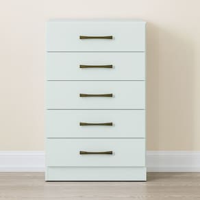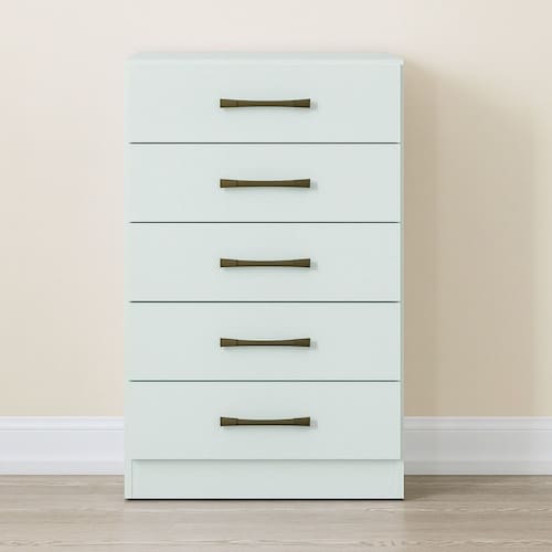 Caracteristicas: 5 Gavetas com corredicas metalicas Acabamento em pintura U.V Estrutura de MDP 15mm e fundos MDF 3mm Possui puxadores