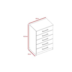 Cômoda 05 gavs. Produzido em MDP 12mm e 15mm de espessura, proporcionando resistência e durabilidade. Amplo espaço interno, garantindo maior firmeza ao móvel. Puxadores de Plástico dando maior resistência. Acabamento em verniz alto brilho, garantindo a conservação do móvel, além de manter o brilho constante oferece ao móvel beleza, resistência e durabilidade prolongando a vida útil do produto.
