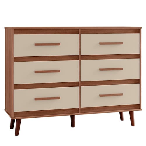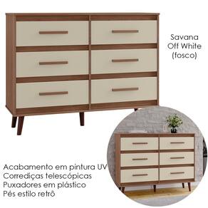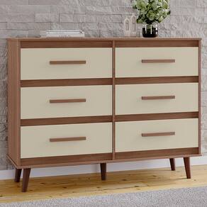 Cômoda Mila, ideal para compor quartos com modernidade e elegância. Produzida em MDP (12/15mm) com acabamento em pintura UV. Conta com 06 gavetas com corrediças telescópicas, puxadores em plástico e pés estilo retrô. Este produto será entregue em 01 volume.