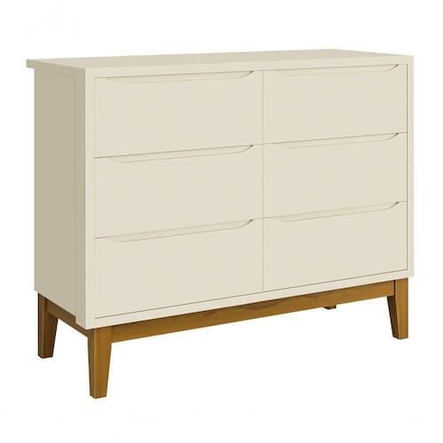 A Cômoda 6 gavetas Classic New - RELLER, é perfeita para o quartinho do seu baby, possui pés em madeira maciça que contribuem para o estilo retrô, possui um desing clean que combina com vários estilos de decoração. Contempla amplas seis gavetas, duas contendo divisórias, para uma maravilhosa organização das roupinhas e itens do seu bebê, possibilita um espaço para armazenamento, de modo que a organização do dia-a-dia possa ser mais fácil. Possui puxadores embutidos, onde as aberturas ocorrem através de recortes no MDF que possibilitam o perfeito encaixe da mão para que possa abrir as portas e gavetas.